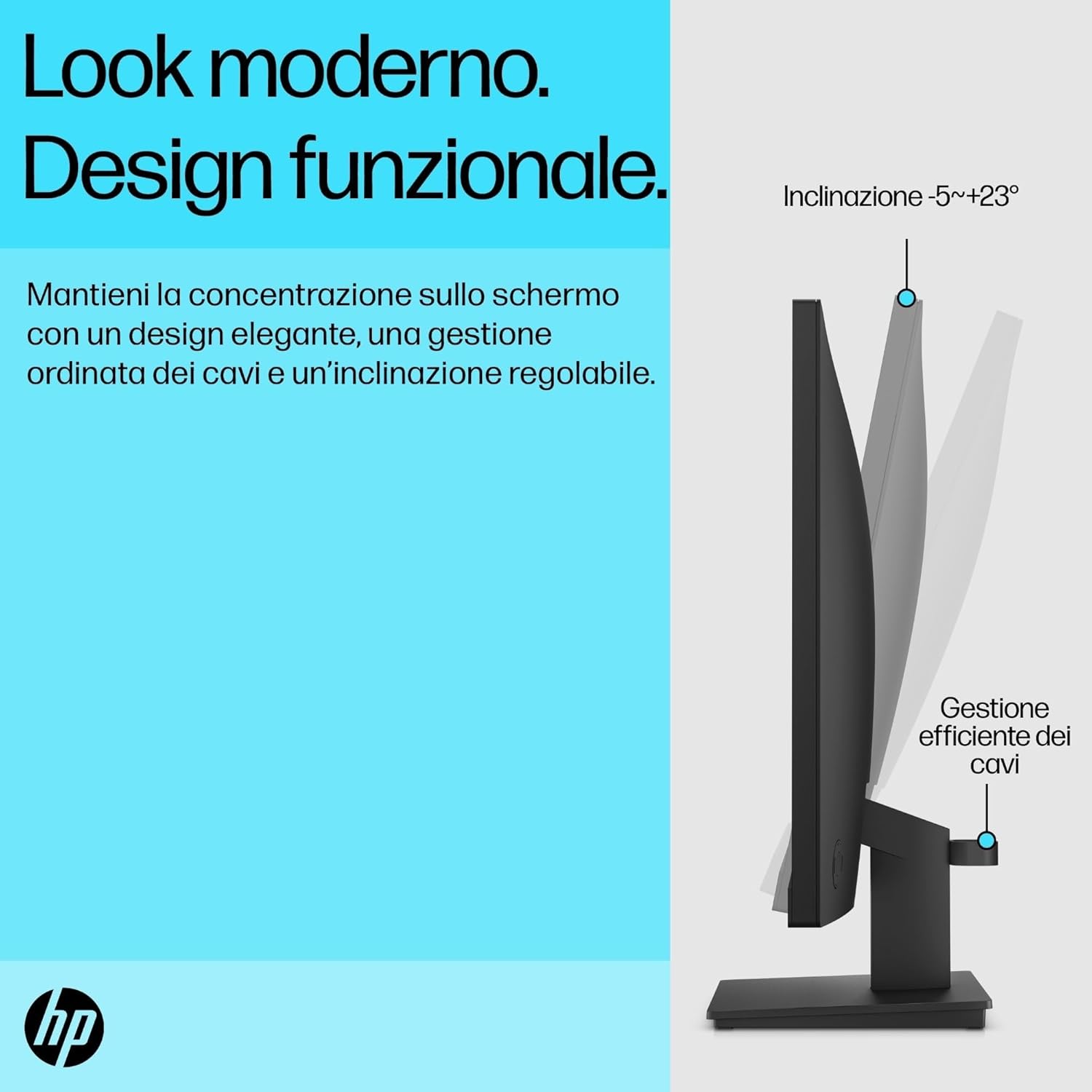 Dotato di un pannello LED da 23,8 pollici, questo modello offre una risoluzione Full HD che garantisce immagini nitide e testi ben definiti, ideali per la lettura prolungata di documenti o la navigazione web. La tecnologia del display assicura angoli di visione ampi, permettendo di visualizzare i contenuti con precisione cromatica anche se non ci si trova perfettamente di fronte allo schermo.Dal punto di vista del design, HP ha puntato sulla pulizia estetica integrando cornici sottili su tre lati, una scelta che non solo modernizza l'aspetto della postazione, ma facilita anche l'affiancamento di un secondo monitor per configurazioni multi-schermo senza interruzioni visive eccessive. La fluidità del movimento è supportata da una frequenza di aggiornamento di 75Hz, che rispetto ai classici 60Hz offre un'esperienza d'uso leggermente più burrosa e riposante per gli occhi durante lo scorrimento delle pagine.La connettività è essenziale ma completa, includendo porte HDMI e VGA per garantire la compatibilità sia con i PC moderni che con l'hardware più datato. Un aspetto di rilievo è l'attenzione al comfort visivo; il monitor integra infatti tecnologie per la riduzione della luce blu e la prevenzione dello sfarfallio, riducendo l'affaticamento oculare durante le sessioni di lavoro più intense. La base di supporto è inclinabile, consentendo di trovare l'angolazione più ergonomica in base alla propria seduta, rendendolo un compagno di lavoro versatile e discreto per ogni ambiente professionale.