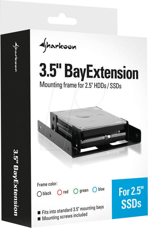 Sharkoon 3.5'' BayExtension Black. Peso: 88 g, Larghezza: 102 mm, Profondità: 120 mm